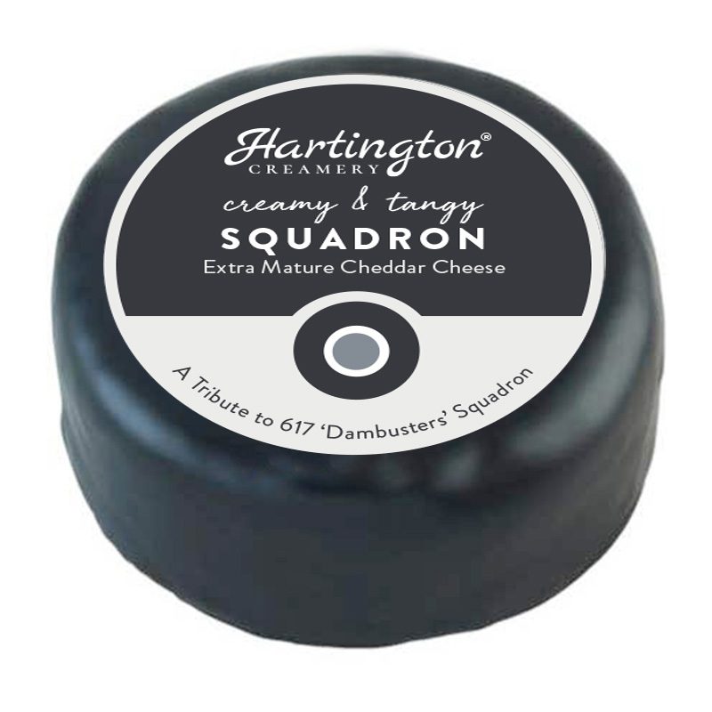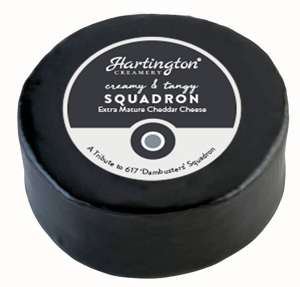 The new ‘Hartington Squadron’ Cheese is a robust, full-bodied cheddar, aged for a minimum of 18 months to achieve a strong, sharp flavour profile. Its distinctive dark, black wax rind and powerful taste are designed to reflect the strength and character of the wartime generation. Ideal for a celebration cake tier and any party where you want to be remembered for the best cheese board ever! Also available as a 200g black wax truckle.